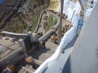 When we got to the Daedalus Hotel, the rooms weren't ready yet, so we decided to explore the town a bit. We walked up a road toward the Atlantis Hotel and found the Museum of Prehistoric Thira, which we toured later in the day. We then walked back down to the main road and decided to find someplace for lunch. We ending up at Mama's House only a short distance away. When we walked down to the restaurant we received a very warm greeting from Mama herself. After a very pleasant meal we headed back to the hotel to get checked in. I think we got a little spoiled by the hotel in Crete. While both the Daedalus Hotel in Santorini and the Grand Hotel in Crete are listed as four star hotels, they are clearly not in the same class. Our room in Santorini was about half the size with poor plumbing and hot water that felt more like less cool cold water. After settling in to the hotel we decided to explore more of Fira (Thera) and do a little shopping. Fira is very interesting, built into the rim of the volcano with all the building stacked and clustered to each other and many stairs leading in every direction. While at first it seems like it would be very easy to get lost, all of the paths interconnect and as long as your headed in the right direction you'll get where you're going. With the day time heat starting to build we decided it would be a good idea to head back to the hotel and check out the pool. Again we were spoiled with our first hotel. The pool at the Daedalus as far as pools go is a great pool. It starts out at 1.5 meters and quickly drops off to 3 meters. Compared to the pools at the grand hotel the water was much cooler and the pool was not as meticulously clean, but it was still a great pool. They even had a nice whirlpool that you can swim into directly from the main pool. After swimming for a bit and cooling off we relaxed in one of the cabanas. For dinner we wanted to eat at a restaurant with a great view of the sunset. Having looked at a few reviews on Trip Advisor we had the name a place we wanted to try, but after finally finding the restaurant we decided to try a restaurant closer to the caldera. After wondering around a bit we decided to try a restaurant that the maitre d had waved us over to. It had a nice view of the caldera and the sunset and very good food. [See review posted on Trip Advisor] | |||