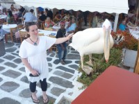 Today was another travel day. After being picked up at the Daedalus Hotel we traveled to the new port where we had some time for lunch before catching the Flying Cat 4 for our trip to Mykonos. This is the same ferry we took to get to Santorini a few days ago. While we were going to Mykonos, several other couples we had met who were also traveling with Gate1 were staying at the Flying Cat 4's first destination, Paros. Too bad we didn't have more time off from work, it might have been nice to explore even more islands, but at least it gives us a reason to return again. As we were approaching Paros and for most of the trip from Paros to Mykonos we learned why the Flying Cat 4 is call a "flying cat." The wind had really picked up and the sea state had become quite choppy. There were quite a few times where cat almost felt airborne and as it was crashing through the waves at high speed you could see the spray shoot past the window. While Alexandra and I enjoyed the ride, some of the other passengers were not as thrilled and started suffering the effects of seasickness. One of the crew started passing out barf bags, but he looked worse than most of the passengers. After arriving at the port in Mykonos we were greeted by a Gate1 agent and boarded a bus to the Dorion Hotel. From our experience at the Daedolous Hotel we weren't quite sure what to expect from the Dorion, but were quite relieved when the bus pulled up and we saw a beautiful hotel not far from one of the best beaches on Mykonos. Our room was also much larger than our room in Santorini with a nice balcony and a large bathroom with a double sink and hot water with plenty of pressure. After settling in we decided to check out the pool. The hotel has a main pool around the main building plus several smaller pools around the complex. We decided to try out the main pool. Unfortunately even though we were on more of the leeward side of the island it was still extremely windy and the pool was getting big waves that were splashing out of the pool. The water in the pool was also rather chilly, so we just sunned ourselves on some nice deck chairs for a bit before heading back to the room where we received a call that the gate1 agent was waiting for us in the lobby. Meeting with the gate1 agent we decided it would be a good idea to rent a car this evening so we could have use of it for the night as well as tomorrow without having to deal with returning the car on Thursday when we were going to be picked up early for a tour of Delos. Someone from the rental car company picked us up a short time later and took us to their office to fill out the rental agreement. We ended up renting a Fiat Panda which was one of the least expensive cars with an automatic transmission. Unfortunately we found out later that while it had automatic transmission, it drove more like a stick shift with someone who didn't know how to drive stick behind the wheel. We drove to Mykonos Town where we parked in the free lot on the opposite side of the harbor from the town and then walked toward the town to the Folklore Museum. The wind was really whipping through the town and we unfortunately walked around the outside of the museum where a big wave crashed over the wall and got both of us wet. While I was amused, Alexandra was not so happy. We finally walked around the other side and found the entrance to the museum. The museum is housed in an old captain's mansion and was filled with historical artifacts, although I don't think either of us were too impressed, especially after having been hit by a wave to make it there. From the museum we walked around the town which is really interesting. All of the buildings are tightly packed together with narrow pedestrian walkways that zig-zag through the town making it very easy to get lost. We ended up having dinner at Nikos Tavern. After we ordered, Alexandra looked up and saw a pelican sitting in a flower box near-by, not sure if it was real or not. Throughout our dinner groups of people kept coming by and taking pictures of the pelican. We finally got our chance after we finished our meal. Following dinner we wondered around a little more only to make it to the waterfront just as the sun was setting and caught the last minute of the sunset before heading back to the car and back to the hotel. Parking at the hotel was interesting since the parking lot was behind and above the hotel. To get to it you have to take a narrow little road with a very steep incline. Somehow the car had no problem making it up, although to me it felt like the car was going to roll over backward. |